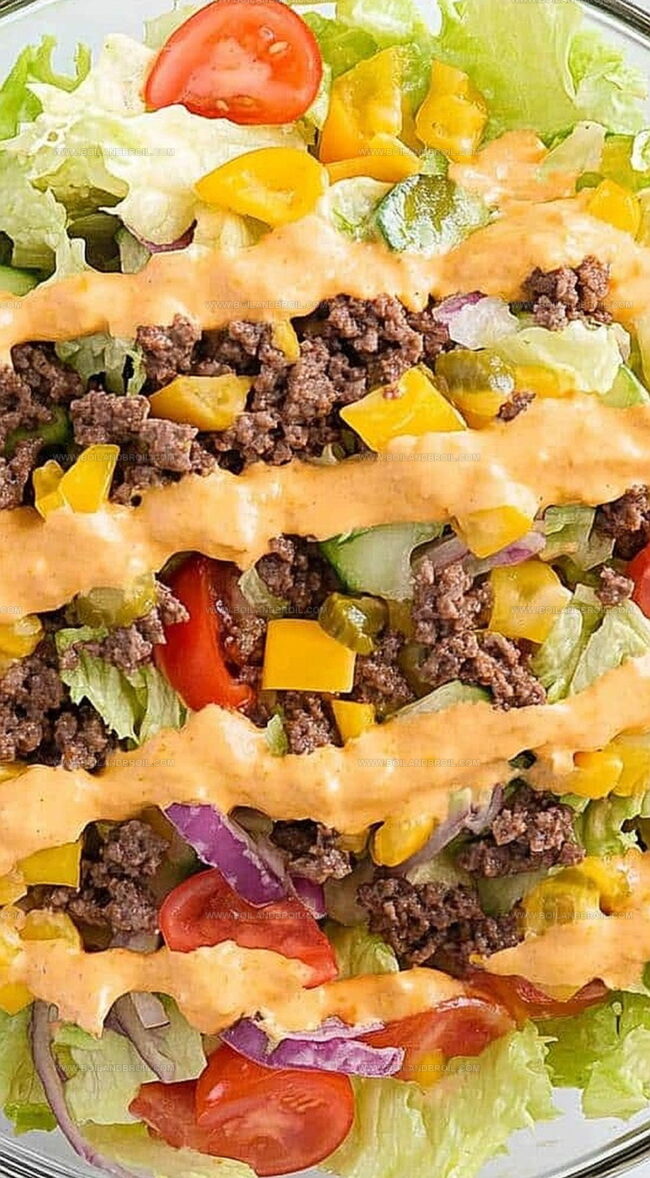 Crunchy lettuce meets classic burger flavors in this mouthwatering big mac salad that brings fast-food nostalgia right to your plate.