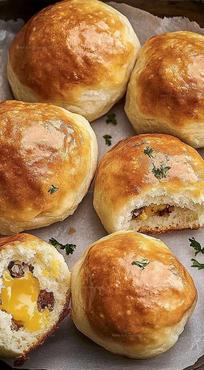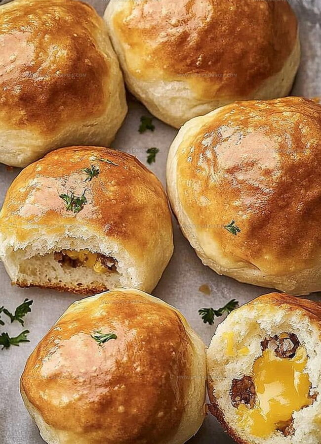 Irresistible breakfast bombs elevate morning meals with crispy bacon, melted cheese, and fluffy scrambled eggs wrapped in golden pastry. Breakfast lovers will savor each bite of this handheld morning delight that combines comfort and convenience in one perfect package.
