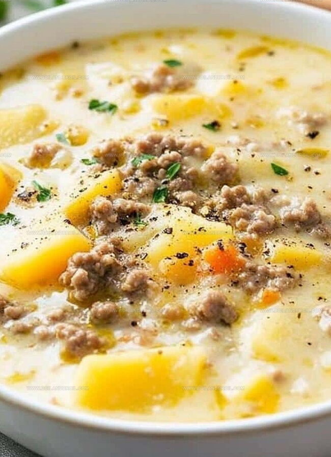 Loaded with ground beef, vegetables, and potatoes, the soup delivers a balanced meal that keeps everyone full and nourished with minimal effort.