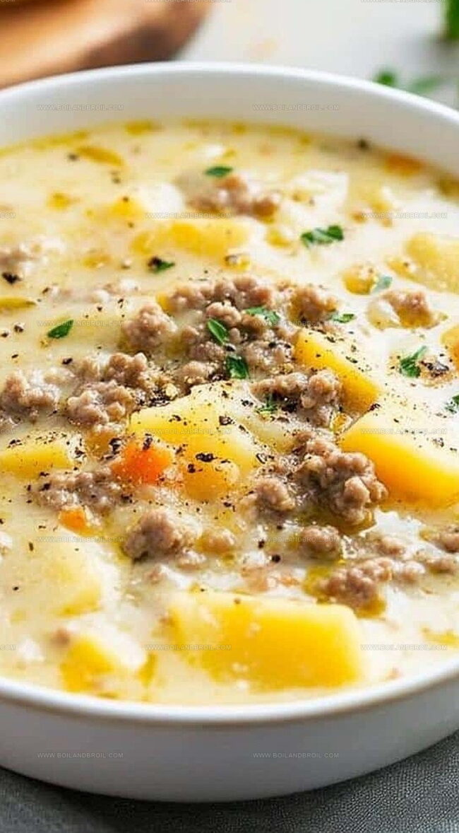Comfort food reaches new heights with this cheesy hamburger potato soup that promises to warm you from the inside out.