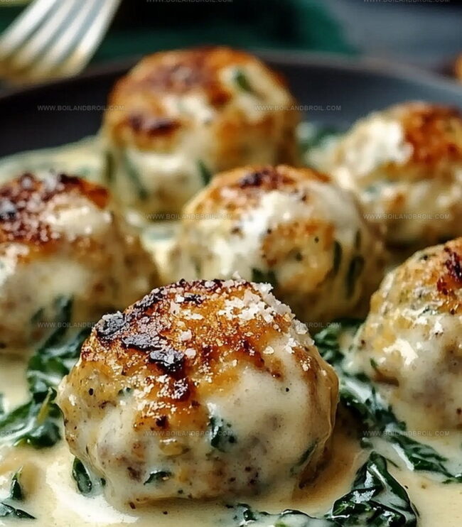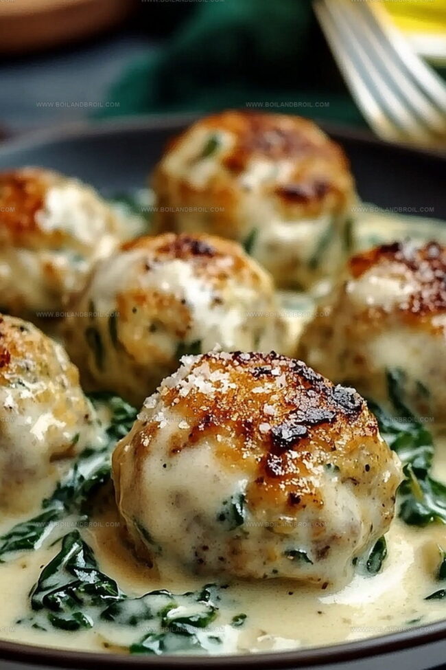 Succulent chicken ricotta meatballs dance through a creamy spinach alfredo sauce, promising an Italian-inspired comfort meal. Elegant yet simple, this dish delivers rich flavors that invite you to savor each delightful, cheesy bite.