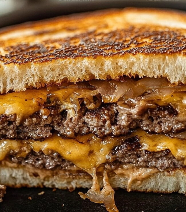 Juicy ground beef nestled between golden-brown bread slices creates a sandwich that feels like pure comfort.