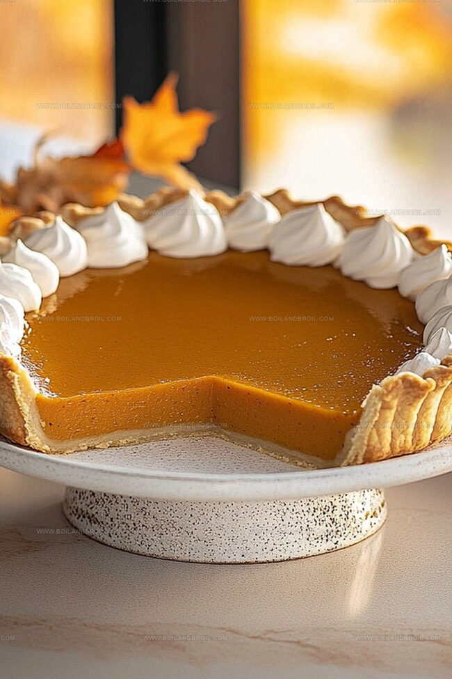 Autumn’s golden warmth whispers through this classic pumpkin pie that captures seasonal comfort in every delectable slice.