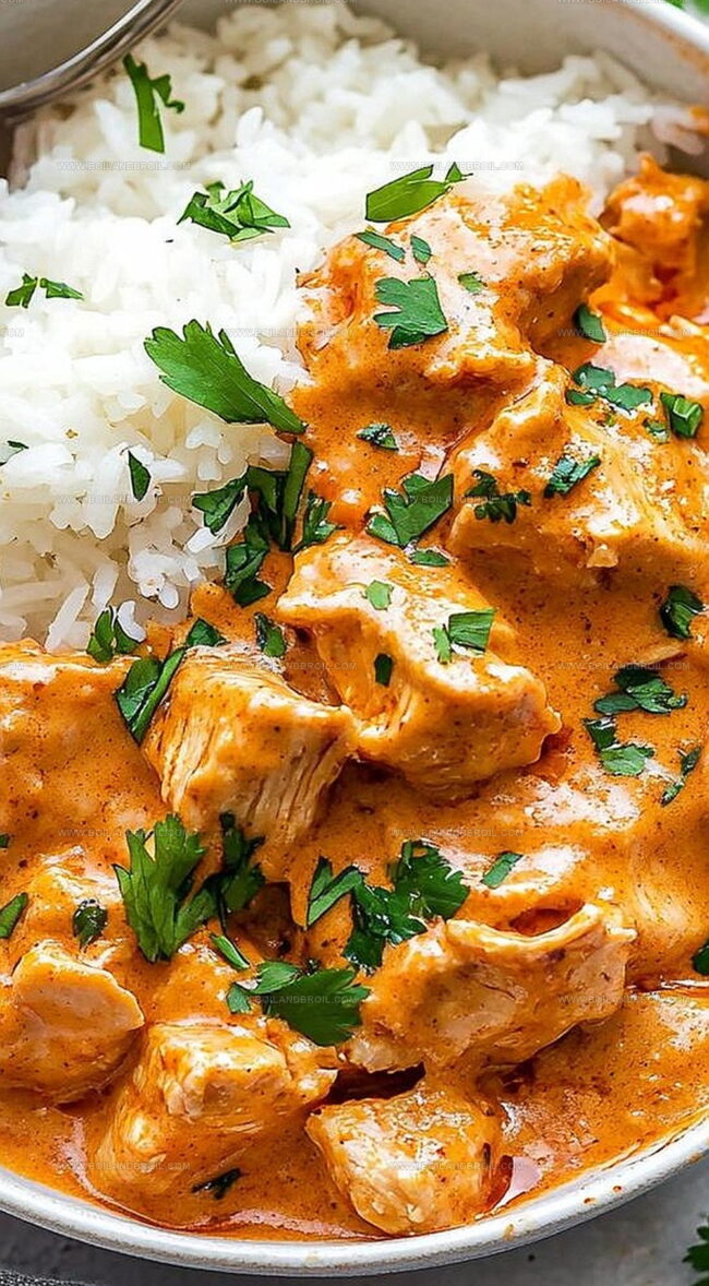 Tender chicken simmers in creamy coconut milk, infusing each bite with rich, aromatic goodness.