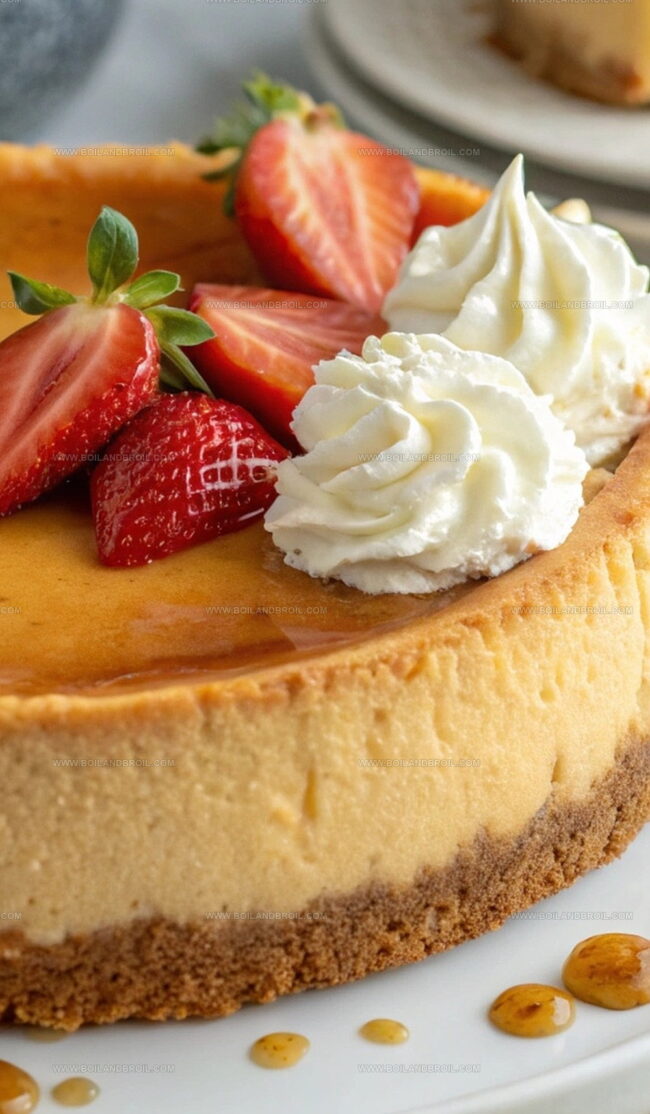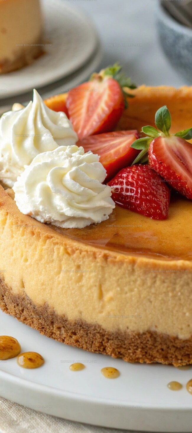 Fruit Companion Delight: Top with fresh berries like raspberries or strawberries, which add a tangy brightness that balances the dense, sweet cheesecake and provides a refreshing counterpoint to the creamy base.