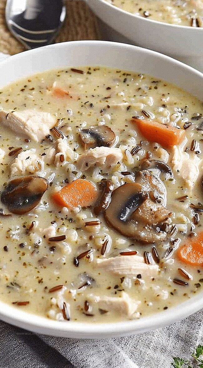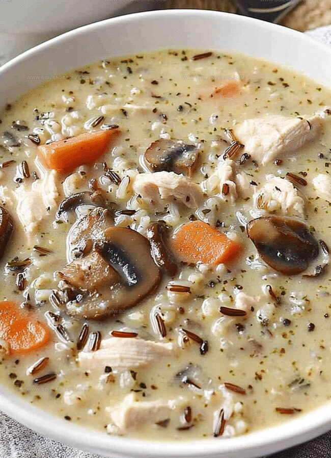 Hearty mushroom chicken and wild rice soup delivers comfort straight from a rustic kitchen in Wisconsin. Earthy mushrooms, tender chicken, and nutty wild rice blend into a rich, warming bowl that embraces you with deep, satisfying flavor.
