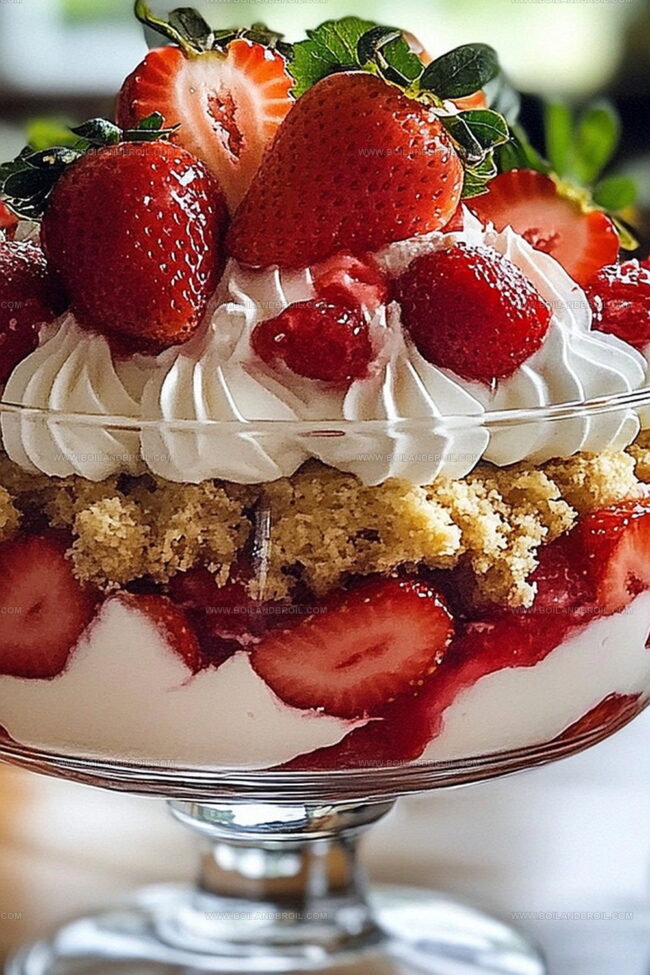 Sweet summer memories dance through this decadent strawberry cheesecake trifle that promises pure indulgence.
