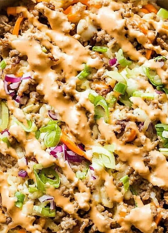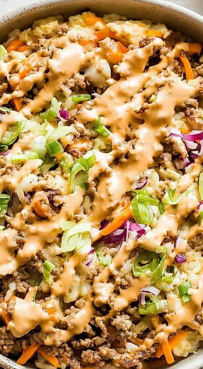 Savory Korean-inspired egg roll in a bowl delivers robust flavors dancing with lean protein and crisp vegetables. Packed with umami and quick to prepare, this low-carb meal satisfies you with its zesty, satisfying blend of textures and bold Asian-style seasonings.