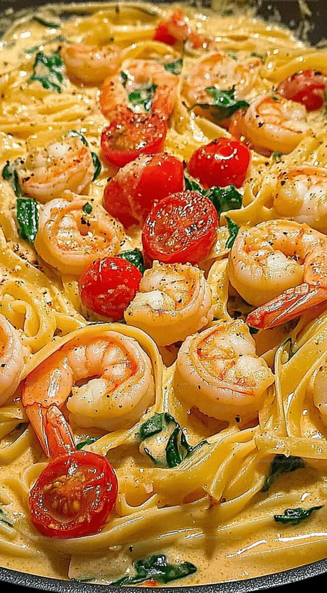 Creamy Fettuccine With Shrimp, Tomatoes, and Spinach Recipe