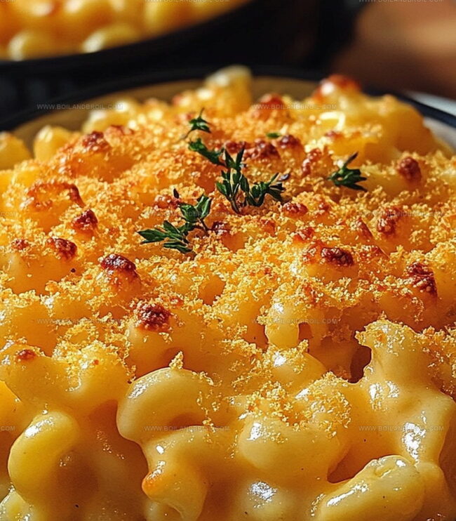 Mix breadcrumbs with melted butter before sprinkling on top to guarantee a golden, crunchy layer that adds delightful texture and contrast to the creamy mac and cheese.