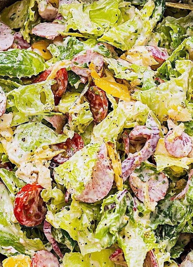 - Gently fold in crisp iceberg lettuce, tossing carefully to prevent wilting. Ensure the lettuce receives an even coating of dressing while maintaining its crunchy texture.
