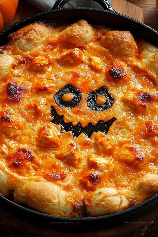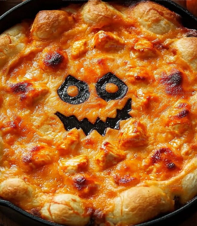 Transform a classic buffalo chicken dip into a festive Halloween appetizer by adding playful Halloween-themed garnishes or serving in a themed dish.