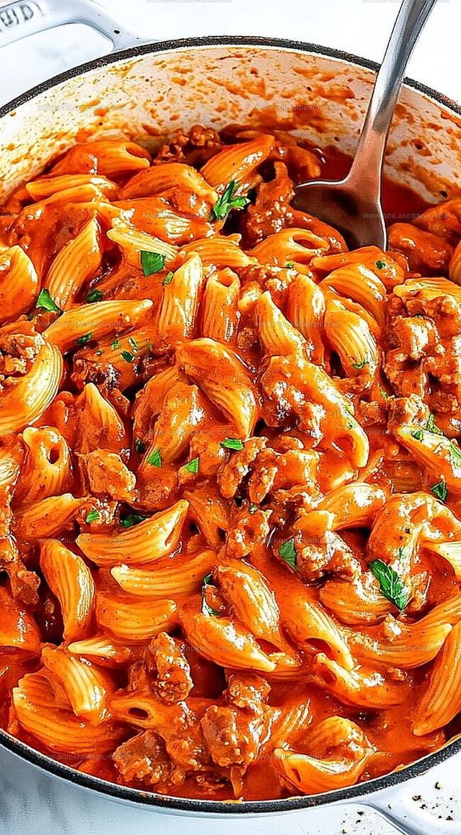 Simple Creamy Tomato Beef Pasta Recipe in One Pot Magic
