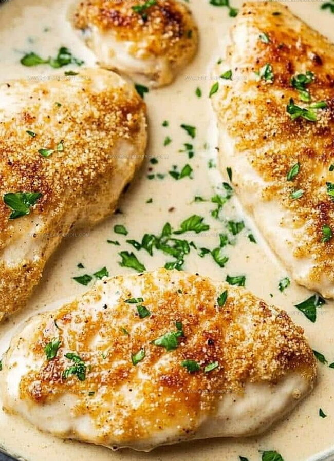 Crispy Parmesan Crusted Chicken with Creamy Garlic Sauce Recipe