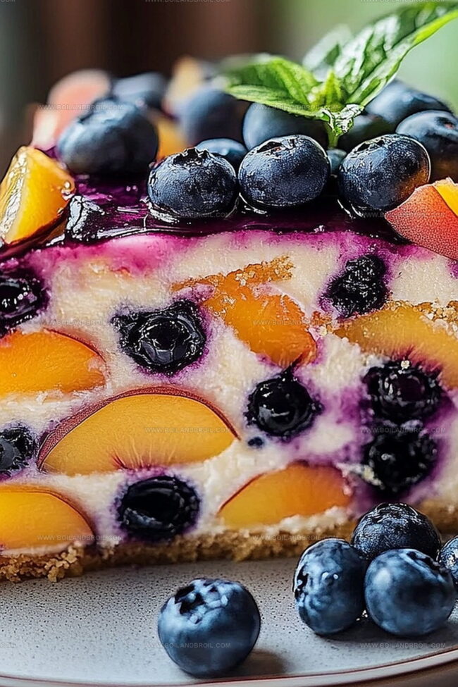 Sweet summer memories bloom in this peach blueberry cake, where juicy fruit and tender crumb dance together. Delicate layers promise pure comfort, inviting you to savor each blissful bite of seasonal delight.
