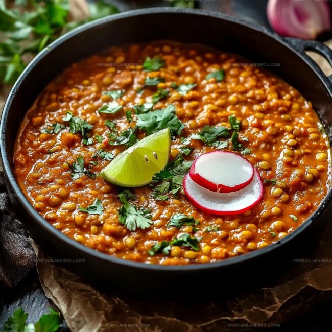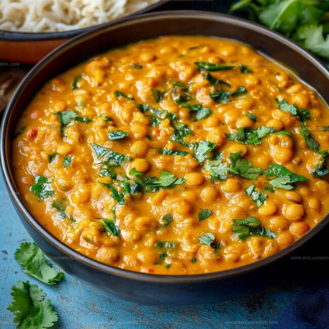 Creamy lentils simmer with warm spices, creating a hearty and nutritious dish.