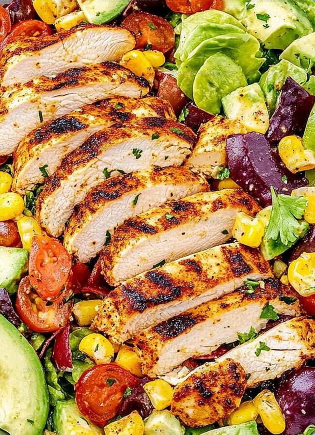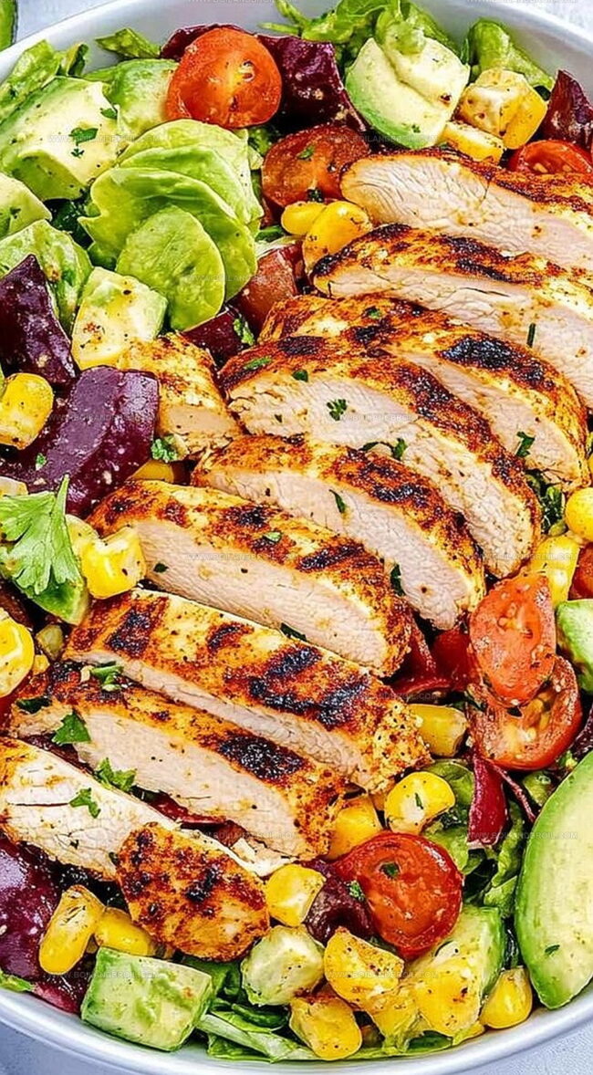 Tender grilled chicken mingles with crisp vegetables in a southwest-style culinary adventure.