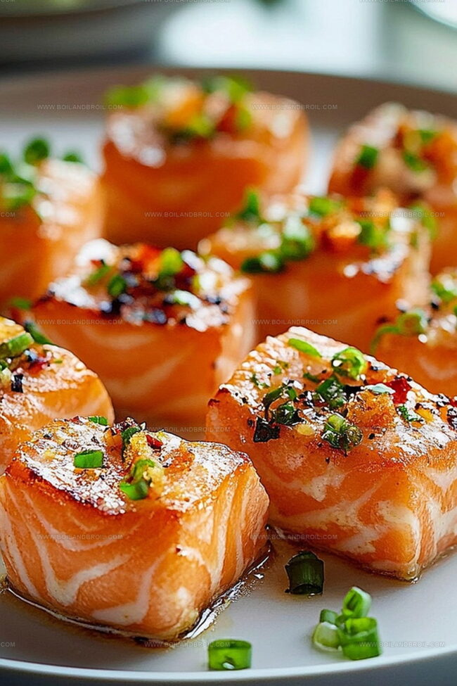Transfer the perfectly cooked salmon bites to a serving plate.