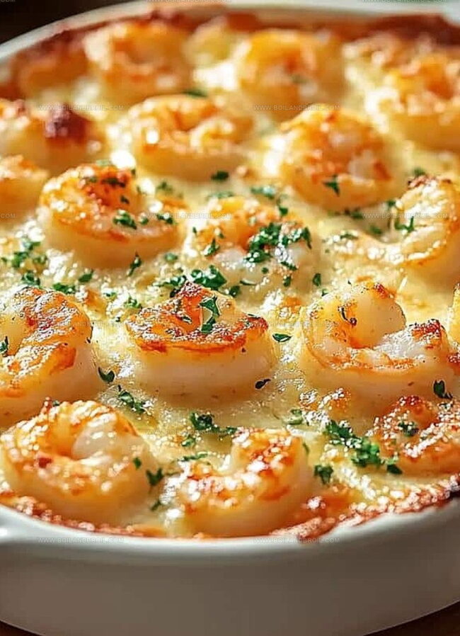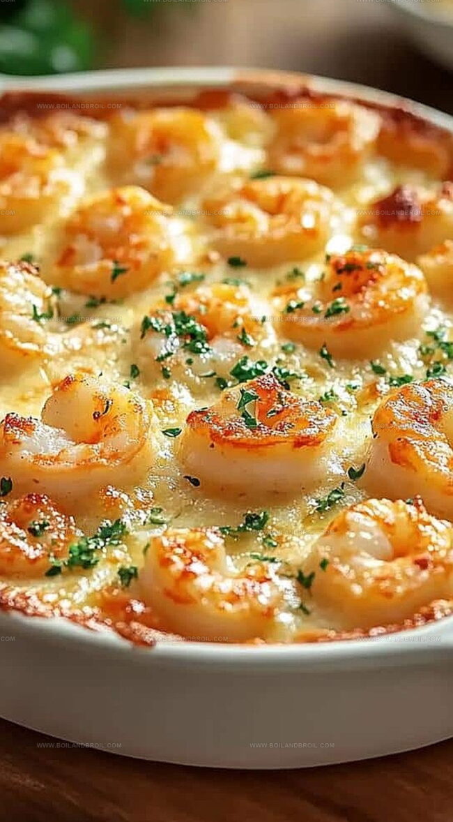 The combination of tender shrimp, velvety sauce, and golden-brown cheese creates a mouthwatering experience that screams indulgence.