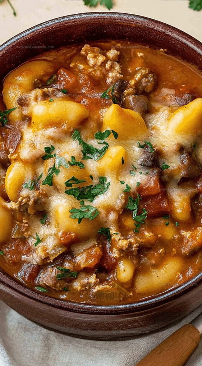 Ground beef simmers gently with tender pasta and rich tomato sauce, creating a meal that speaks directly to your soul.