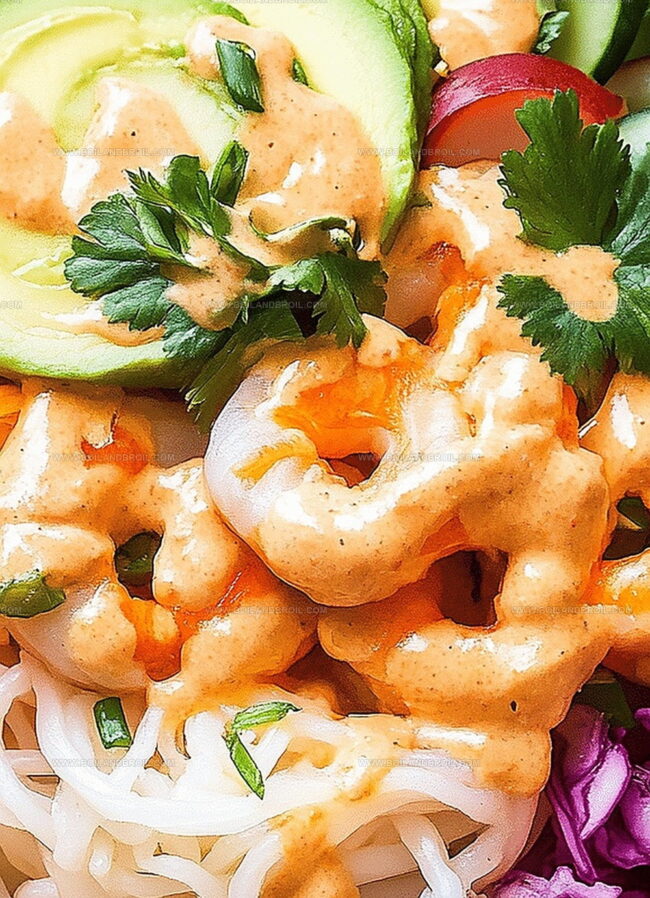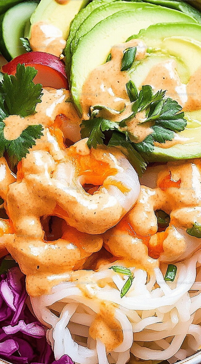 - Construct vibrant bowls by first layering rice noodles as a foundation, then artfully arranging prepared vegetables and seared shrimp.