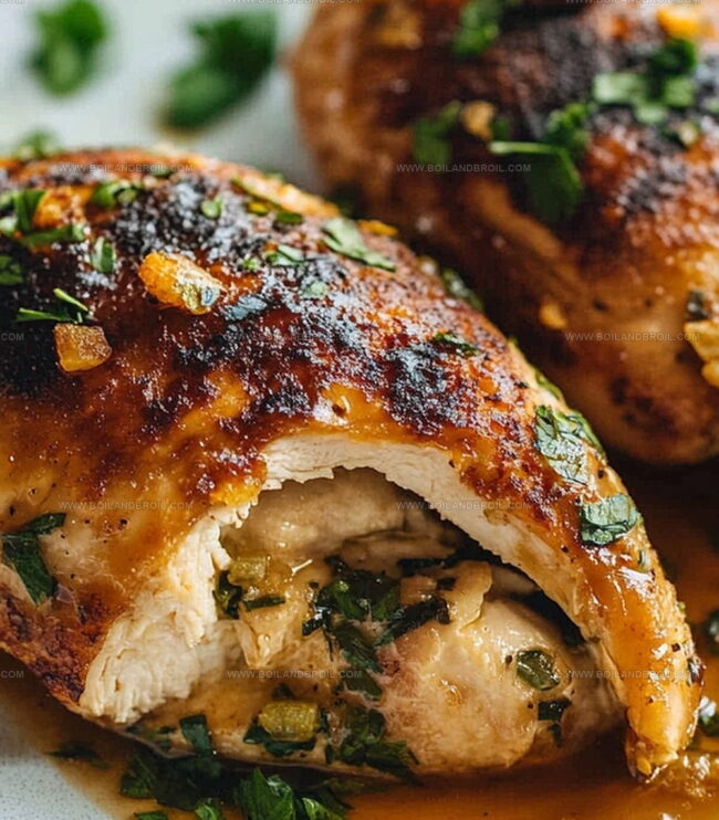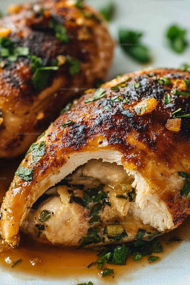 Tender meat embraces a delightful blend of creamy cheese and vibrant herbs.